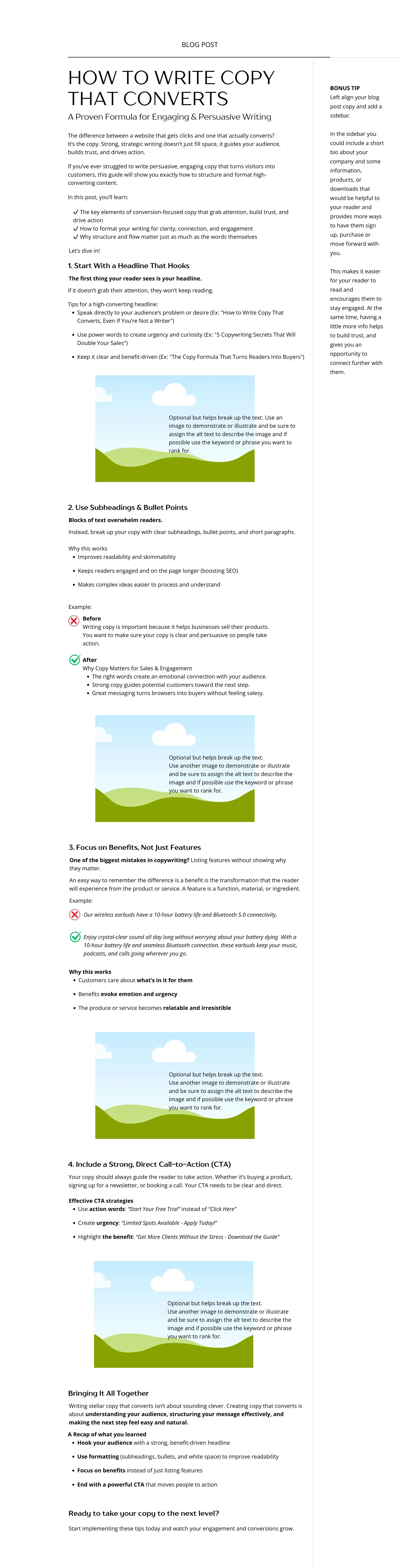 SEO Optimization – The target keyword (“How to Write Copy That Converts”) was woven naturally throughout.